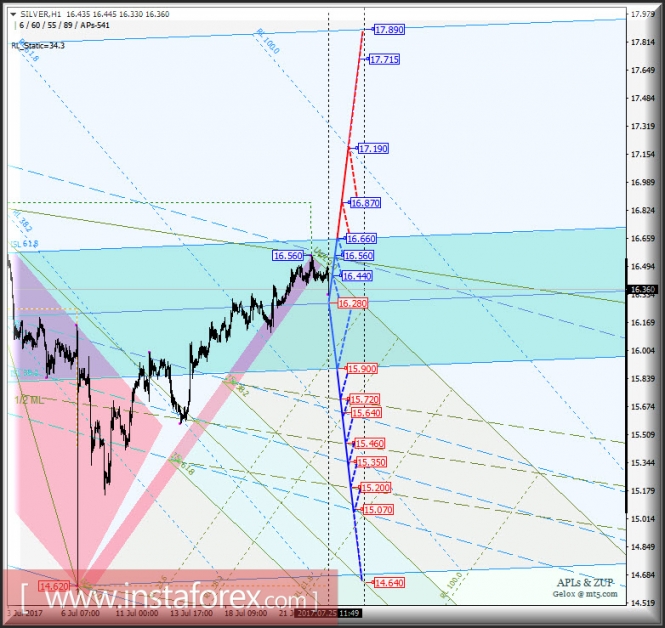 Материал предоставлен компанией InstaForex - www.instaforex.comSilver Spot h1. Варианты развития движения с 25 июля 2017 г. Анализ APLs & ZUP