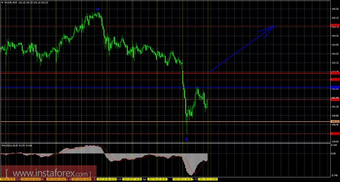 На 15-минутном графике рекомендуется рассматривать лонги с целью 144,81 при закреплении цены выше Тенкан-сен (142,68), ордере Stop Loss ниже 142,68 и при направленном вверх индикаторе MACD.