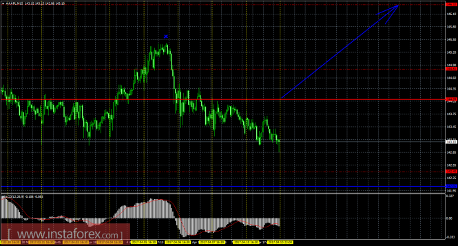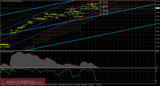 На 15-минутном графике рекомендуется рассматривать лонги с целями 144,81 и 146,32 при закреплении цены выше Тенкан-сен (144,09), ордере Stop Loss ниже 144,09 и при направленном вверх индикаторе MACD.