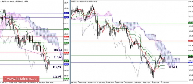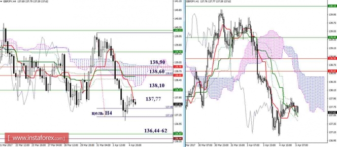 Материал предоставлен компанией InstaForex - www.instaforex.comДневной обзор GBP/JPY и EUR/JPY на 05.04.17. Индикатор Ишимоку