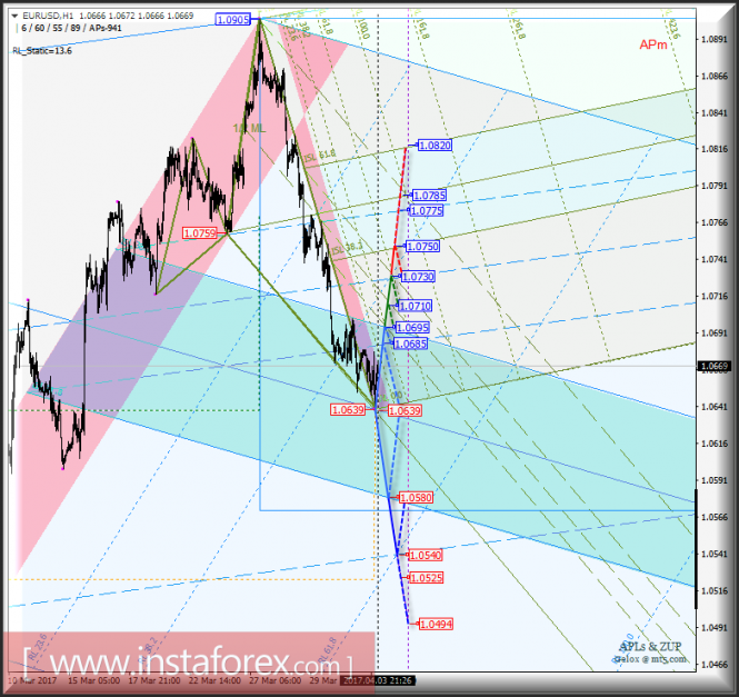 Материал предоставлен компанией InstaForex - www.instaforex.comEUR/USD h1. Варианты развития движения с 04 апреля 2017 г. Анализ APLs & ZUP