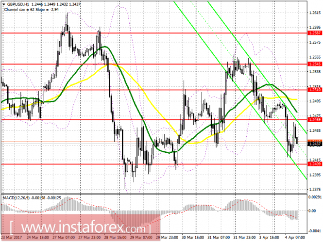 Дотянуться продавцам до 1.2409 с первого раза так и не удалось, но формирование быстрого отскока от утреннего уровня сопротивления 1.2469 указывает на присутствие в рынке крупных игроков, ставящих на дальнейшее падение фунта. Прорыв 1.2425 может привести GBP/USD уже в район 1.2409 с последующим выходом на 1.2342. В случае роста фунта продавать теперь советую только в районе 1.2510.