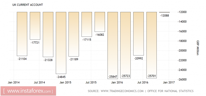 Пожалуй, главными драйверами ралли фунта на исходе первого квартала стали сообщения о стремительном падении отрицательного сальдо счета текущих операций и о росте прямых иностранных инвестиций на 110 млрд фунтов. Первый индикатор снизился до 2,4% от ВВП, что является его лучшим значением с 2011 года и говорит о том, что девальвация стерлинга после референдума о членстве Британии в ЕС оказывает поддержку экономике Туманного Альбиона. Действительно, чем меньше дефицит, тем меньше денег требуется для его покрытия, и потребность Лондона в заманивании нерезидентов в страну при помощи налоговых льгот и прочих преференций может резко снизиться. Это благоприятно отразится на переговорах с Брюсселем, представители которого уже сделали предупреждение, что дополнительные преференции для иностранцев могут поставить крест на доступе к единому рынку ЕС.