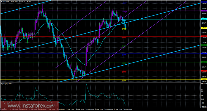 Хайкен Аши – индикатор, окрашивающий бары в голубой или фиолетовый цвета.Материал предоставлен компанией InstaForex - www.instaforex.comТехническая картина инструмента GOLD по системе «Каналы регрессии» за 31 марта 2017 года