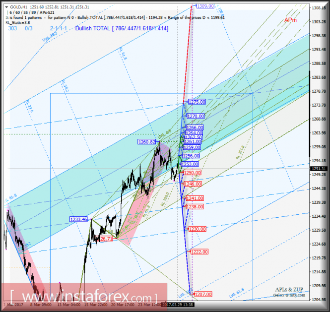 Материал предоставлен компанией InstaForex - www.instaforex.comGold Spot h1. Варианты развития движения с 30 марта 2017 г. Анализ APLs & ZUP