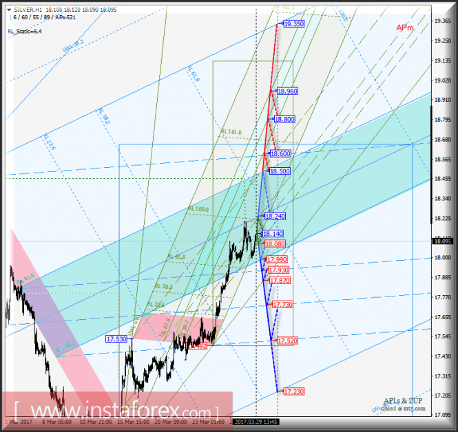 Дальнейшее развитие движения цены инструмента (Silver Spot) в период 30 марта - 05 апреля 2017 г. будет обусловлено отработкой границ канала 1/2 Median Line (18.080 <-> 18.140 <-> 18.240) вил операционного масштаба Micro.