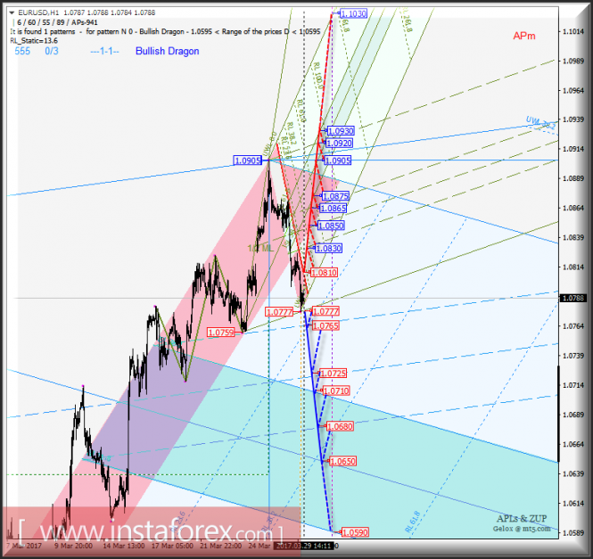 EUR/USD h1. Варианты развития движения с 30 марта 2017 г. Анализ APLs & ZUP