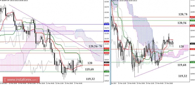 Дневной обзор GBP/JPY и EUR/JPY на 28.03.17. Индикатор Ишимоку