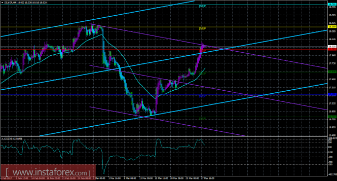 Техническая картина инструмента SILVER по системе «Каналы регрессии» за 28 марта 2017 года