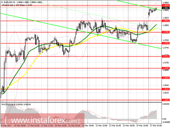Развитие движения цены инструмента (EUR/USD) в период 27-28 марта 2017 г. будет обусловлено отработкой границ зоны равновесия (1.0827 <-> 1.0815 <-> 1.0805) вил операционного масштаба Micro и канала 1/2 Median Line (1.0820 <-> 1.0810 <-> 1.0800) вил операционного масштаба SubMinuette.