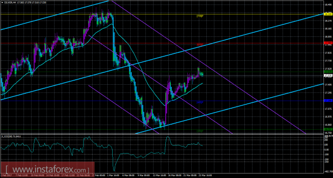Материал предоставлен компанией InstaForex - www.instaforex.comТехническая картина инструмента SILVER по системе «Каналы регрессии» за 24 марта 2017 года
