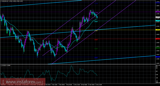 Хайкен Аши – индикатор, окрашивающий бары в голубой или фиолетовый цвета.Материал предоставлен компанией InstaForex - www.instaforex.comТехническая картина валютной пары EURUSD по системе «Каналы регрессии» за 24 марта 2017 года