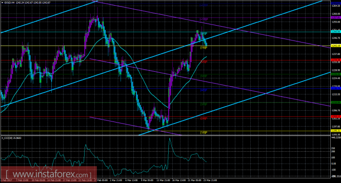 Техническая картина инструмента GOLD по системе «Каналы регрессии» за 24 марта 2017 года