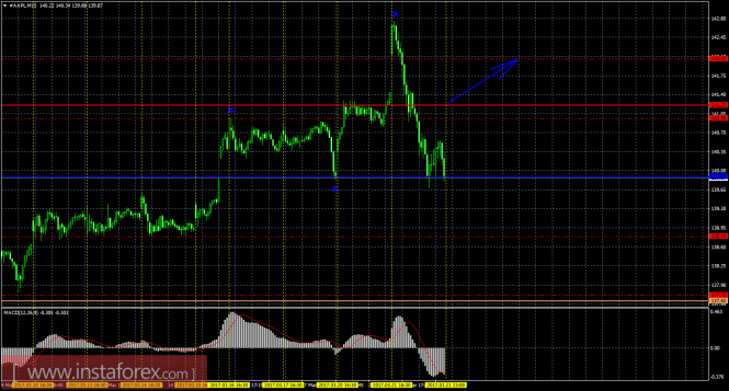 На 15-минутном графике рекомендуется рассматривать лонги с целью 142,05, при закреплении цены выше Тенкан-сен (141,20), ордером Stop Loss ниже 141,20 и при направленном вверх индикаторе MACD.