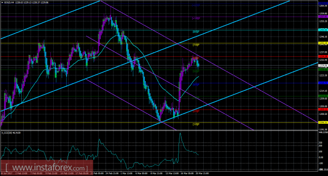 Хайкен Аши – индикатор, окрашивающий бары в голубой или фиолетовый цвета.Материал предоставлен компанией InstaForex - www.instaforex.comТехническая картина инструмента GOLD по системе «Каналы регрессии» за 21 марта 2017 года
