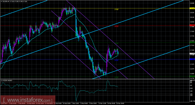Материал предоставлен компанией InstaForex - www.instaforex.comТехническая картина инструмента SILVER по системе «Каналы регрессии» за 21 марта 2017 года