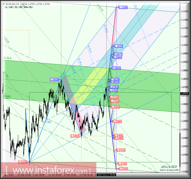 Материал предоставлен компанией InstaForex - www.instaforex.comEUR/USD h4. Перспективы развития движения с 20 марта 2017 г. Анализ APLs & ZUP