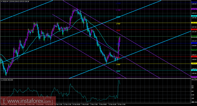 Хайкен Аши – индикатор, окрашивающий бары в голубой или фиолетовый цвета.Материал предоставлен компанией InstaForex - www.instaforex.comТехническая картина инструмента GOLD по системе «Каналы регрессии» за 16 марта 2017 года