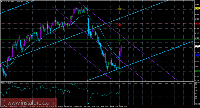 Материал предоставлен компанией InstaForex - www.instaforex.comТехническая картина инструмента SILVER по системе «Каналы регрессии» за 16 марта 2017 года