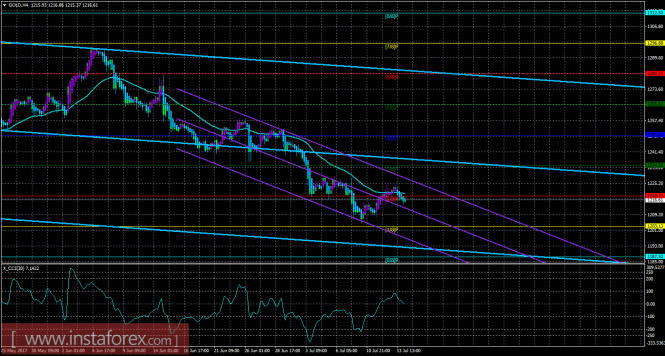 Хайкен Аши – индикатор, окрашивающий бары в голубой или фиолетовый цвета.Материал предоставлен компанией InstaForex - www.instaforex.comТехническая картина инструмента GOLD по системе «Каналы регрессии» за 14 июля 2017 года