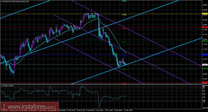 Техническая картина инструмента SILVER по системе «Каналы регрессии» за 14 марта 2017 года