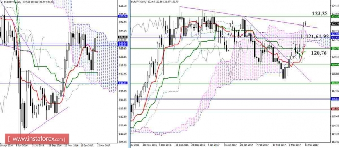 Красная линия и гистограмма с белыми барами в окне индикаторов.Материал предоставлен компанией InstaForex - www.instaforex.comДневной обзор GBP/JPY и EUR/JPY на 13.03.17. Индикатор Ишимоку