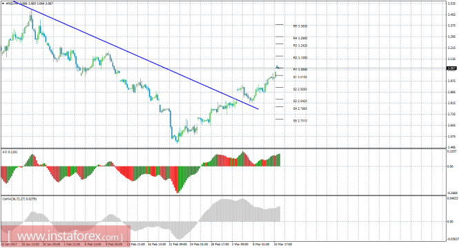 По инструменту #NG сейчас рекомендуется рассматривать варианты лонгов с целями 3,1560 и 3,2420. Стоп лосс выставляется ниже ближайшего уровня поддержки. Рекомендуется выставить стоп лосс в зону безубытка при прибыльности сделки 800-1000 пунктов. Разворот вниз Awesome или OsMA укажет на новую коррекцию, как и отскок от уровня 3,1560 или закрепление ниже 3,0690. Ордера на продажу уже не актуальны.