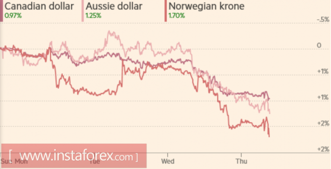 2017-03-10 13:26:56 (читать в оригинале)Российский рубль за последнюю неделю потерял около 1,4% против американского доллара и входит в шестерку худших исполнителей по итогам пятидневки среди более чем трех десятков валют, отслеживаемых Bloomberg. Слабее выглядят лишь бразильский реал (-2,5%), норвежская крона, южноафриканский ранд (по -2%), новозеландский доллар (-1,7%) и мексиканский песо (-1,5%). Все эти денежные единицы относятся к рискованным активам и товарным валютам, а основным драйвером их снижения стал обвал цен на нефть. Черное золото в течение двух дней потеряло около 7% на фоне сворачивания рекордных нетто-длинных позиций спекулянтами из-за информации об очередном росте американских запасов. Усилия ОПЕК по выводу рынка на баланс, похоже, не приносят результата, а Штаты продолжают пользоваться благоприятной для них конъюнктурой.