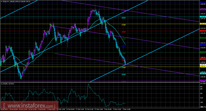 Хайкен Аши – индикатор, окрашивающий бары в голубой или фиолетовый цвета.Материал предоставлен компанией InstaForex - www.instaforex.comТехническая картина инструмента GOLD по системе «Каналы регрессии» за 10 марта 2017 года