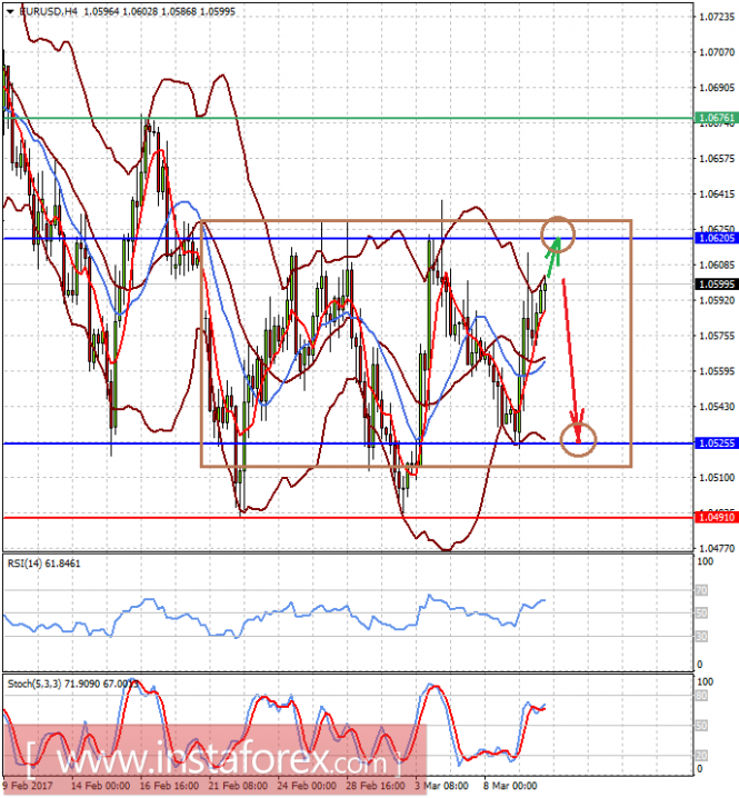 Пара EURUSD торгуется в диапазоне 1.0525-1.0620. Вероятно, что до публикации данных по занятости из США она еще подрастет к 1.0620. Если цифры окажутся позитивными, следует ожидать локального падения цены в сторону 1.0525.