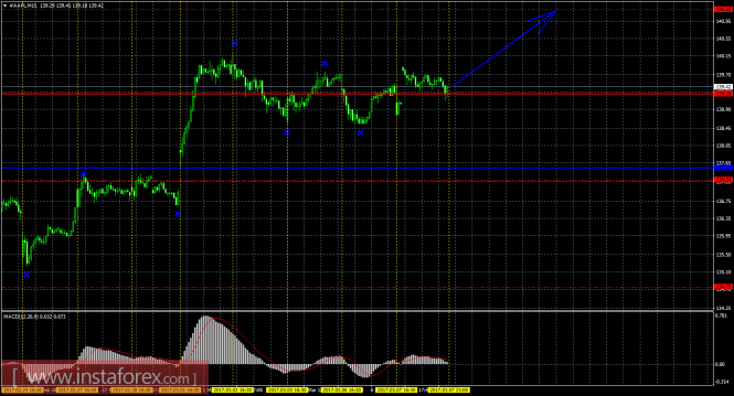 На 15-минутном графике рекомендуется рассматривать ордера на покупку с целью 141,22 при закреплении цены выше Тенкан-сен (139,25), ордером Stop Loss ниже 139,25 и при направленном вверх индикаторе MACD.