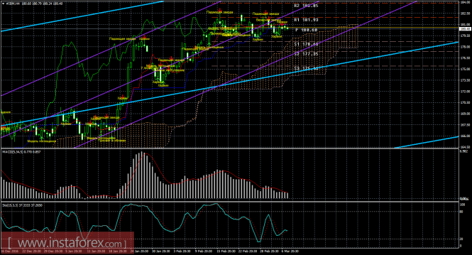 На младшем графике рекомендуется рассматривать ордера на покупку с целью 181,93 при открытии выше 181,01 (Тенкан-сен), ордером Stop Loss ниже 181,01 и при направленном вверх индикаторе MACD.
