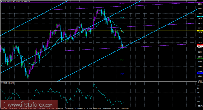 Материал предоставлен компанией InstaForex - www.instaforex.comТехническая картина инструмента GOLD по системе «Каналы регрессии» за 8 марта 2017 года