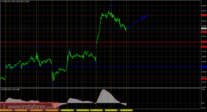 На 15-минутном графике рекомендуется рассматривать ордера на покупку с целью 139,81, при закреплении цены выше 138,63, ордером Stop Loss ниже 138,63. MACD при этом должен быть направлен вверх.