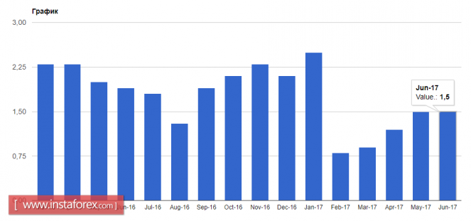 Согласно отчету, потребительская инфляция в Китае в июне этого года осталась без изменений, на майском уровне. По сравнению с тем же периодом 2016 года индекс потребительских цен вырос на 1,5%. Данные полностью совпали с прогнозами экономистов. Напомню, что основной задачей руководство Центрального банка является удержание инфляции в текущем году на уровне не выше 3%.