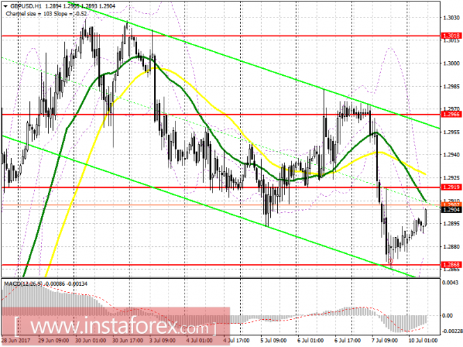 Продавцы сегодня постараются удержать пару ниже 1.2919, а формирование на этом уровне ложного пробоя будет хорошим сигналом к увеличению коротких позиций с целью снижения в район поддержки 1.2868. Закрепление под этим уровнем приведет к более крупной распродаже фунта с обновлением области 1.2819, где рекомендую фиксировать прибыль.