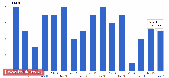 Как я отмечал выше, лишь небольшую поддержку евро оказали данные Еврокомиссии, согласно которым индекс настроений в экономике еврозоны в феврале вырос до 108 пунктов против 107,9 пункта в январе. Особый рост доверия наблюдался в сфере услуг, где индекс укрепился до 13,8 пункта с 12,8 пункта в январе. Несмотря на неопределенность накануне выборов во Франции и Нидерландах, текущие показатели указывают на хорошие темпы роста экономики еврозоны в начале 2017 года.