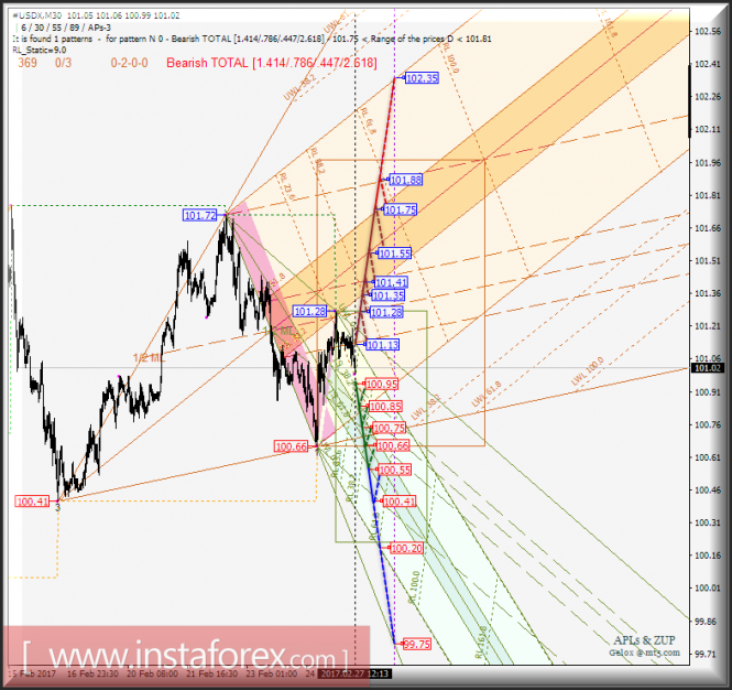 #USDX m30. Развитие движения в период 27_28 февраля 2017 г. Анализ APLs & ZUP