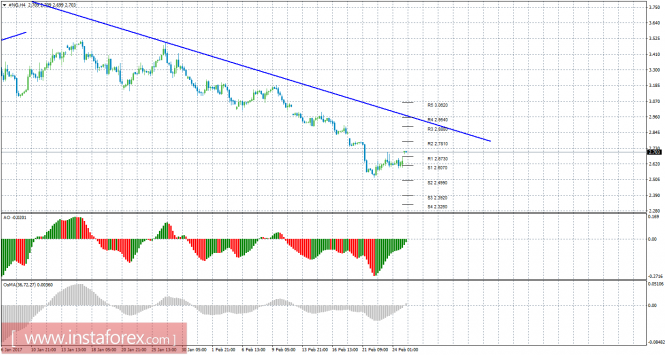 Красная линия и гистограмма с белыми барами в окне индикаторов.Материал предоставлен компанией InstaForex - www.instaforex.comТехнический анализ природного газа за 27 февраля 2017 года