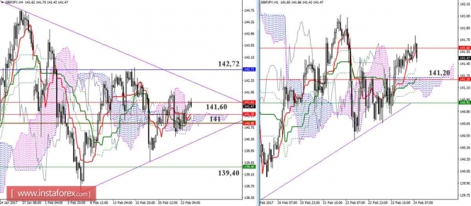 Материал предоставлен компанией InstaForex - www.instaforex.comДневной обзор GBP/JPY и EUR/JPY на 24.02.17. Индикатор Ишимоку