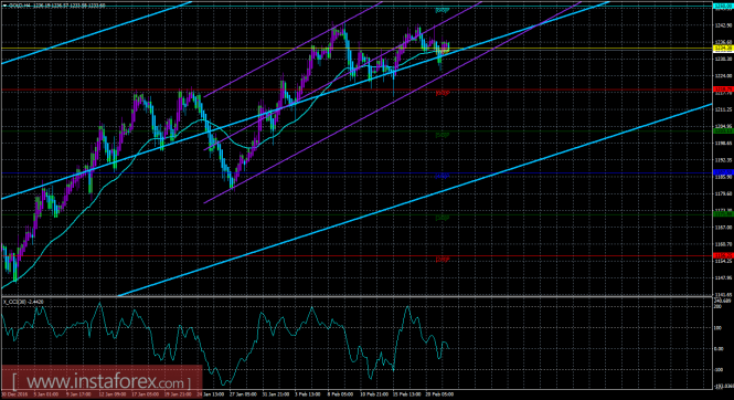 Техническая картина инструмента GOLD по системе «Каналы регрессии» за 22 февраля 2017 года
