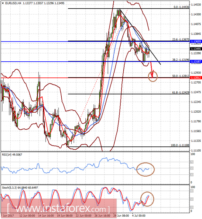 Если рынок получит хорошие сигналы, то спрос на евро может существенно увеличиться, что приведет к выходу за пределы бокового диапазона 1.1325-1.1375 и продолжению восходящей тенденции по рисковым активам в район 1.1400 и 1.1460. Если же отчет по рынку труда окажется лучше прогнозов экономистов, спрос на американский доллар может вновь усилиться, что обвалит торговый инструмент в район важной поддержки 1.1295-1.1280, от которой будет зависеть текущая восходящая тенденция.