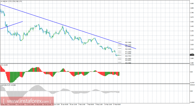 Красная линия и гистограмма с белыми барами в окне индикаторов.Материал предоставлен компанией InstaForex - www.instaforex.comТехнический анализ природного газа за 21 февраля 2017 года