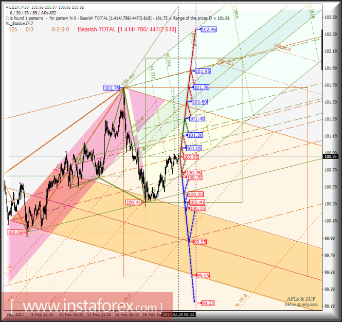 #USDX m30. Развитие движения в период 20_21 февраля 2017 г. Анализ APLs & ZUP