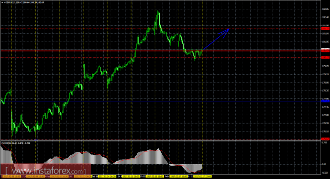 Исходя из анализа движения курса золота, можно сделать вывод, что сейчас рекомендуется рассматривать длинные позиции с целью 1250,00. Второй актуальной целью выступает уровень 1265,63. Уровень стопа рекомендуется располагать ниже мувинга и по мере его повышения переносить вверх и стоп лосс. При прохождении 1000-1500 пунктов, стоп лосс можно переносить на нулевой уровень. Открывать новые лонги можно будет в случае окраса индикатором Хайкен Аши 1-2 баров (в зависимости от размера) в фиолетовый цвет или при отскоке цены от мувинга. T/P можно размещать чуть ниже ближайших целей. Шорты сейчас рассматривать не рекомендуется.
