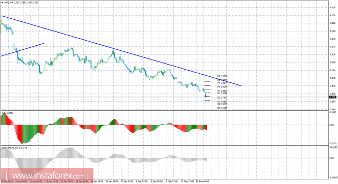 Красная линия и гистограмма с белыми барами в окне индикаторов.Материал предоставлен компанией InstaForex - www.instaforex.comТехнический анализ природного газа за 20 февраля 2017 года