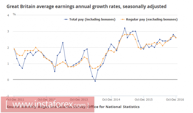 Давление на британский фунт усилилось после публикации данных по инфляции и рынку труда. Несмотря на то что цены производителей выросли больше ожиданий, этот положительный сигнал был нивелирован слабостью розничных цен, которые снизились в январе на 0.6%. Потребительская инфляция выросла на 1.8%, это выше, чем 1.6% месяцем ранее, однако ниже прогноза 1.9%.