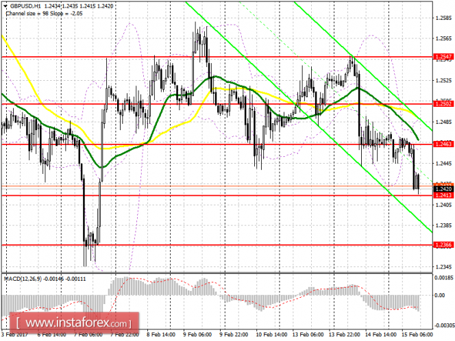 Падение по фунту также остановилось чуть раньше ожидаемого мною уровня поддержки, о котором я подробно говорил в утреннем обзоре. Если закрепиться ниже 1.2413 на новостях по инфляции в США не получится, советую посмотреть длинные позиции от этого уровня с целью возврата на 1.2463 и с обновлением максимума в области 1.2502. Покупки на снижении фунта, в случае пробоя 1.2413, советую смотреть лишь после падения в район 1.2366 с возможным растягиванием уровня до 1.2348.