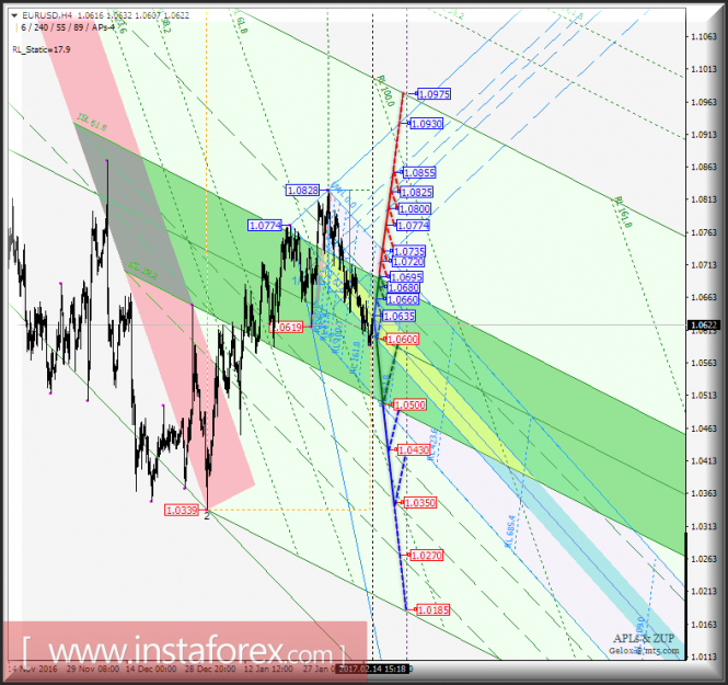 Материал предоставлен компанией InstaForex - www.instaforex.comEUR/USD h4. Перспективы развития движения с 15 февраля 2017 г. Анализ APLs & ZUP