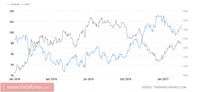 Динамика золота и индекса доллара